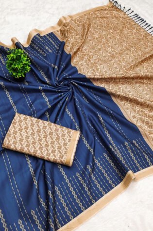 Royal Navy Blue Mysore Soft Silk Saree with Antique Gold Zari Woven Design