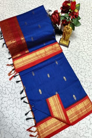 Royal Blue Kalyani Cotton Saree with Red Zari Border & Butti Design