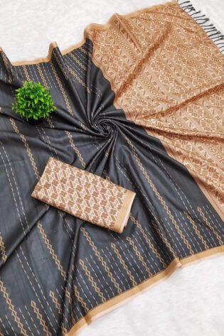 - Blouse: Included (Unstitched, Black with Zari Border)