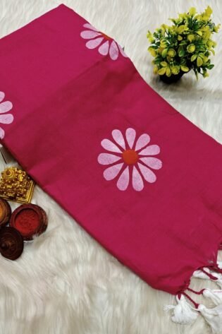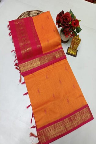 Vibrant Orange Kalyani Cotton Saree with Pink Zari Border