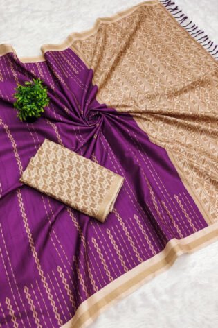 Royal Purple Mysore Soft Silk Saree with Beige Zari Woven Border