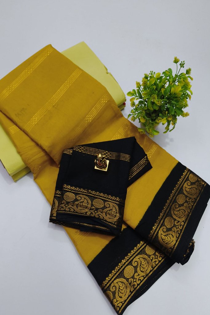 Elegant Mustard Yellow Veldhari Chungidi Cotton Saree with Black Zari Border