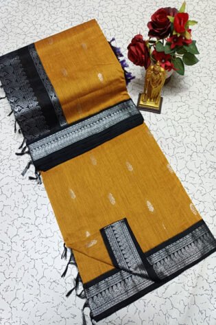Elegant Mustard Yellow Kalyani Cotton Saree with Black Zari Border