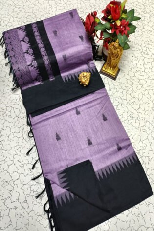 Elegant Rust Orange Kalyani Cotton Saree with Purple Zari Border