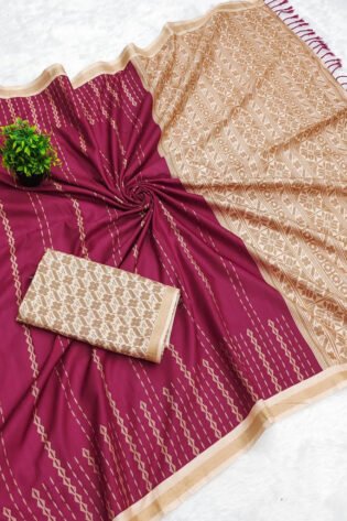 - Design Pattern: Classic Butti Design with Rich Contrast Zari Border & Traditional Pallu